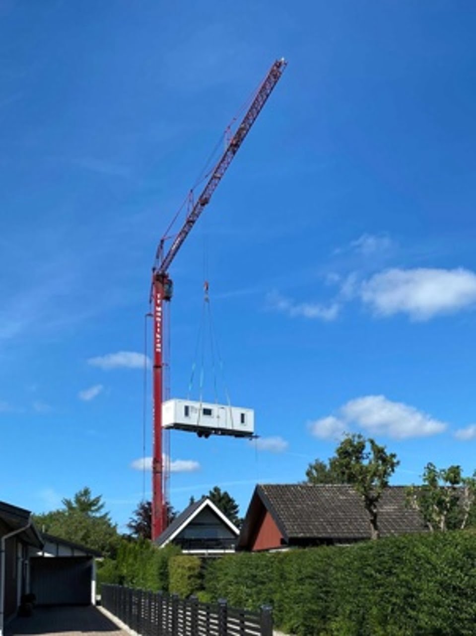 På denne måde kan svendene have plads til pauser, bad og toilet….og der kan samtidig afholdes byggemøde med bygherre og dennes rådgiver, samtidigt.